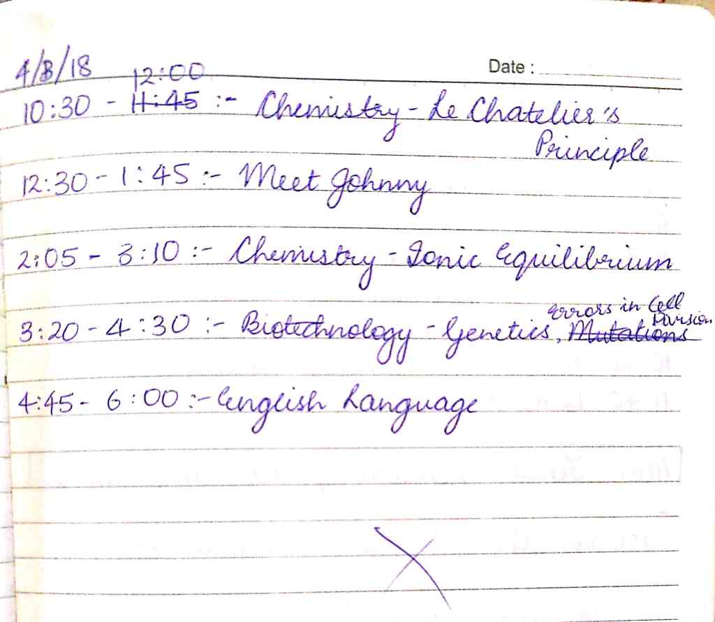 Having heard all of this, my therapist and I decided that I needed to start slowly and above anything else, prioritize a regular schedule that would allow me to fulfill my academic responsibilities as well as give my mind something to do other than think all day. Days that I stuck to the schedule, I could add a little tick at the bottom. To me, this seemed doable and I went home somewhat cheerfully that day. Every day, I drafted a schedule that was not too heavy but allowed me to get my essential tasks out of the way. Alas, not even a single tick made it to a page. I would always start off the day energized, but almost immediately, find a way to procrastinate and make excuses. If there’s one thing I have realized over the last few years, it’s the vitality of a routine – especially for those suffering from depression. But at that time, a routine’s importance was lost on me. (I had a fair share of unhealthy practices that I would employ in order to avoid confronting difficult work or emotions, but that’s for another day.)